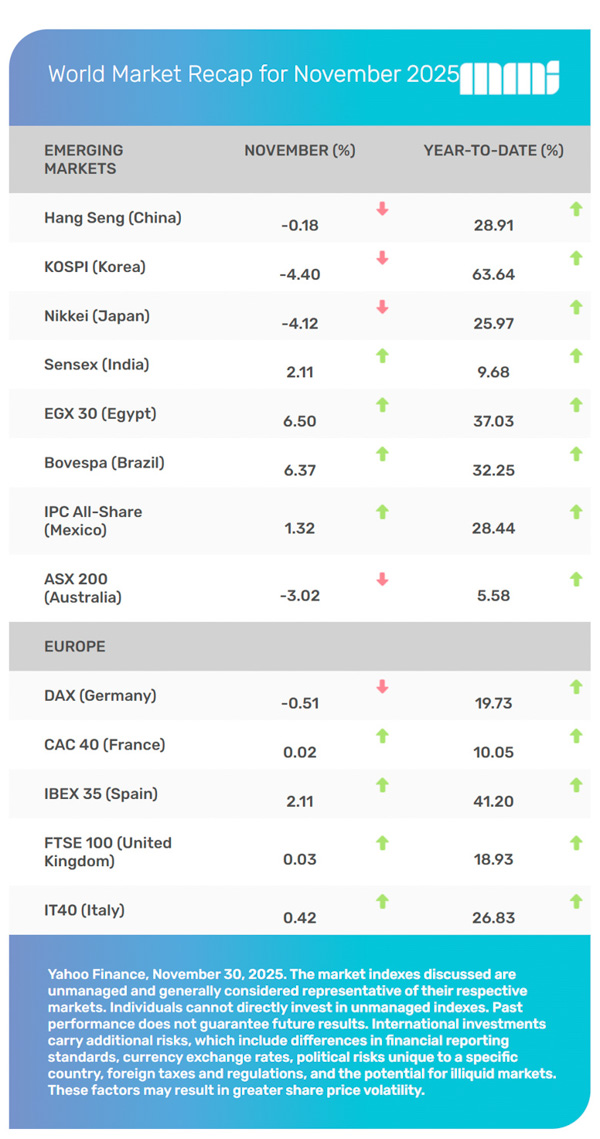 The market indexes discussed are unmanaged and generally considered representative of their respective markets. Individuals cannot directly invest in unmanaged indexes. Past performance does not guarantee future results.